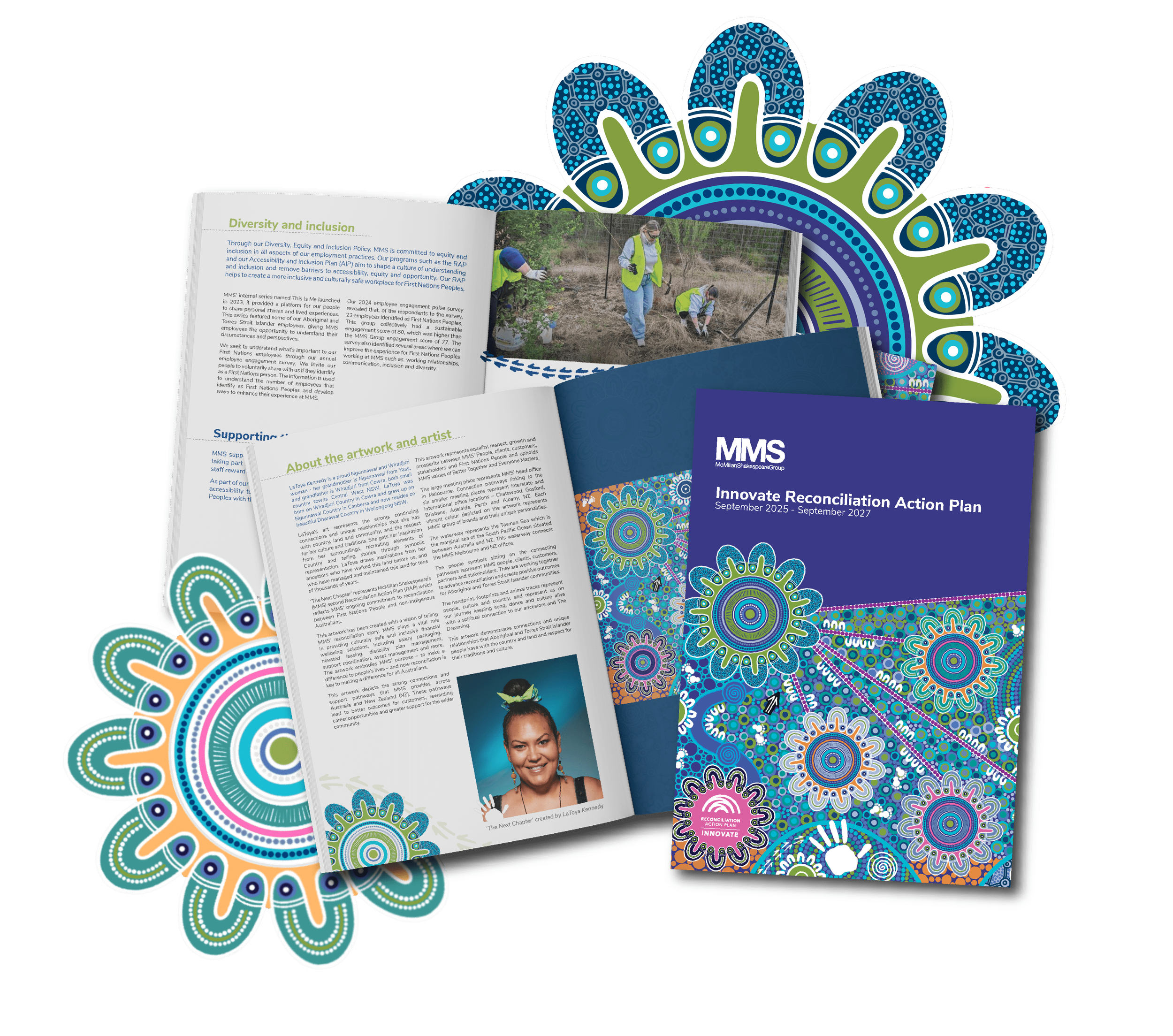 Smyth Studio partnered with McMillan Shakespeare to design their Reconciliation Action Plan, working collaboratively with artist Kylie Hill.